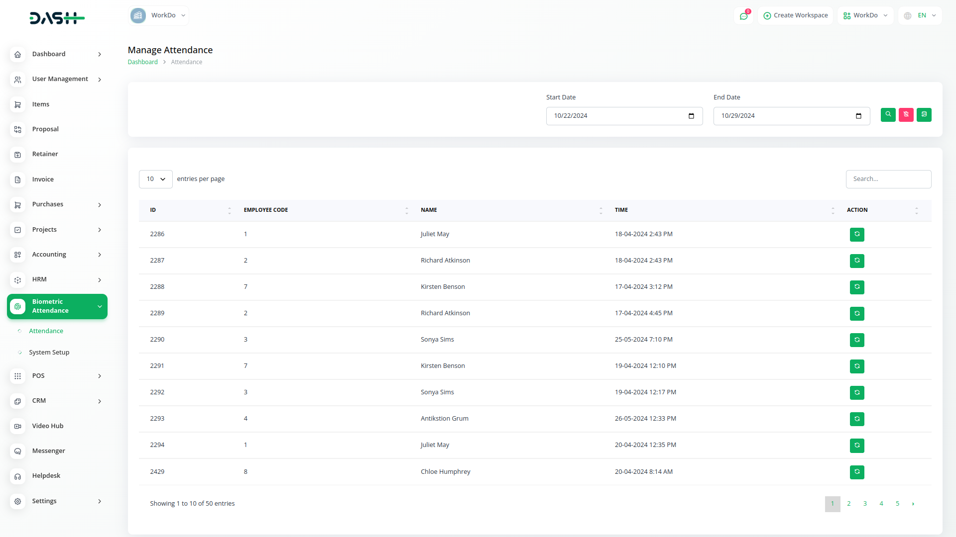 Keep track of your employees' attendance history with ease. Our module provides a detailed overview of each employee's attendance records, allowing you to monitor trends and identify any patterns or discrepancies. Whether you need daily, weekly, or monthly reports, Dash SaaS has you covered.